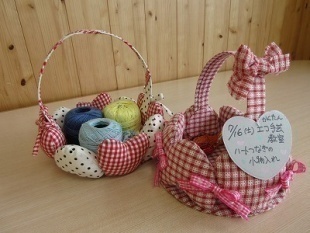 はぎれや古布を使って、こんなにかわいいハートのバスケットを作りました。