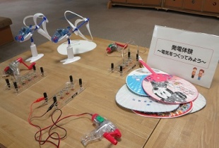 手回し発電もあります。 ハンドルを回して豆電球をつけてみましょう。