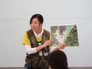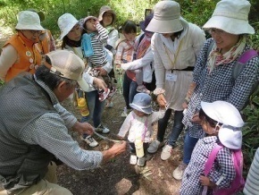 あべまきの会のぐっさん、レンジャーのなるちゃんが虫やおたまじゃくし、