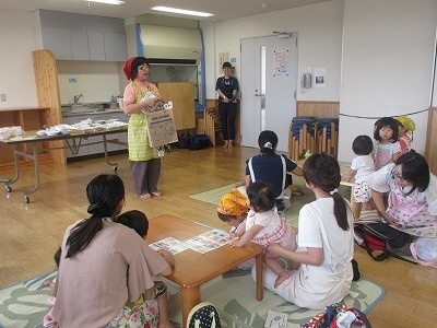 まずは、インプリさんからの”ごみひとしぼり”のお話や紙芝居。