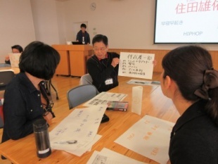 みんなで積み木キャラバン隊事業の背景や昨年度の実施報告を聞き、活動のことを知ることができました。
