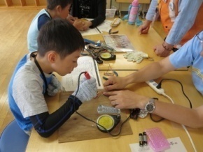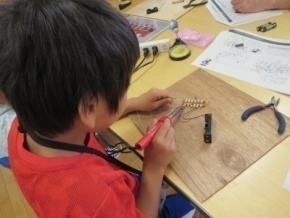 最初は、触ると熱いことにちょっとドキドキしている子も、慣れてくると自分の力でハンダゴテを使用して作成する姿が見られました。