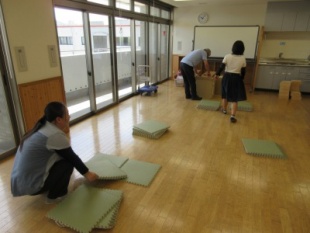 積み木を運んで、積み木ワークショップをして、また片付けるという一連の流れを行いました。