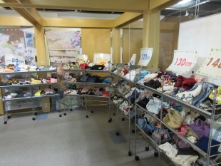 こども服・陶器がたくさん並んでいます。