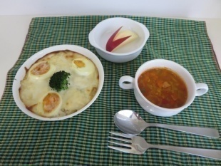 ドリアと野菜スープです。