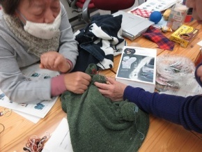講座では、お家から持ってきた洋服の補修をしたあと、