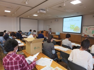 最初に豊田市のごみの現状やコンポストの仕組みについてお話しさせていただきました。