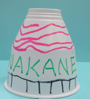 そしてこちらは、立体的なプラスチックカップに描いたもの。この出来上がりは、当日のお楽しみです。
