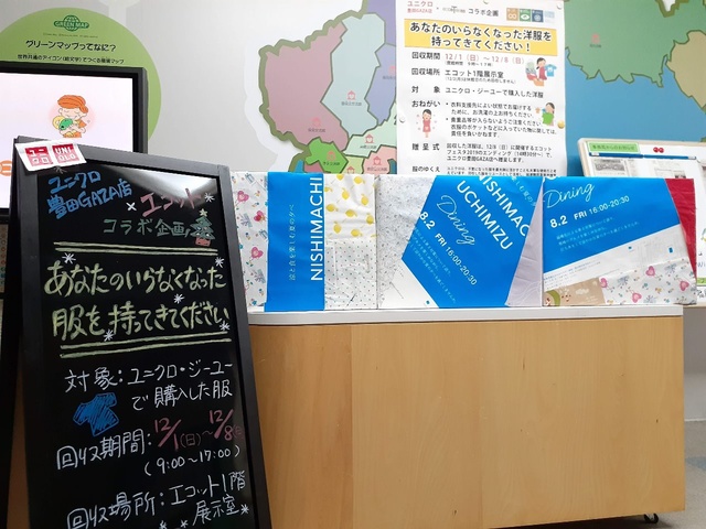 12月1日から8日までの8日間、期間限定で、ユニクロ・GUの服をエコットで回収しています。