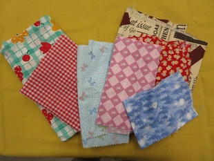 今回の講座で作るエコバッグは、無地のエコバッグに好きな布や余っているはぎれを縫ったり、ボタンなどを付けたりして、オリジナルマイバッグを作ります。