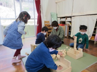 昨日(3月11日)は、今年度最後の積み木キャラバンで豊松こども園へ伺いました。