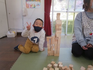 高く積み重ねたり、お家を作ったりとワイワイしながら思いのまま積み木と触れ合ってました。
