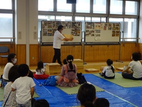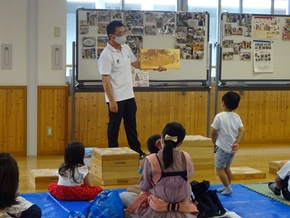 まずは積み木のレクチャーを受けます。お子さまたちも真剣に聞いていました。