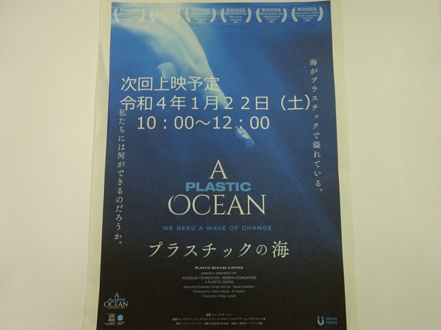 2022年1月22日(土)10:00~12:00に「プラスチックの海」を上映予定です。