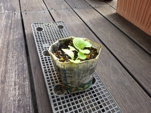 かわいい白菜の芽が出て、すくすく大きくなっています。