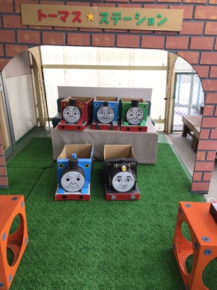 このトーマスと仲間たちはダンボールでできていて、手書きで描いてあり感動!