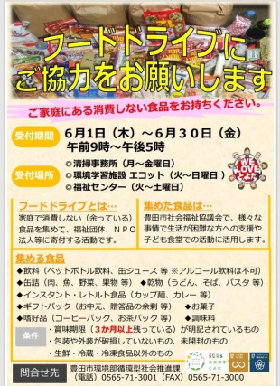 … 6月から循環型社会推進課によるフードドライブが始まりました。