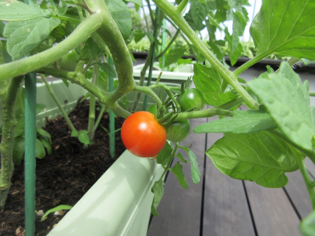 3階のウッドデッキで、春に種を蒔いた野菜や花がすくすくと大きくなっています。