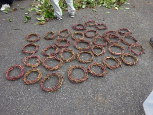 さらに、サツマイモのつるを利用してリース作りもしました。