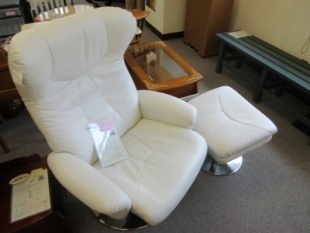 リクライニング機能付き、足置き付きなのでリラックスできること間違いなし。
