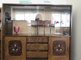 木の扉は彫り物がはまっており、素敵で重厚な茶ダンスでした。