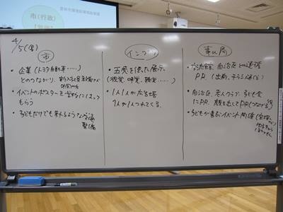 昨日と同じく「eco-TのPRについて」の知恵出しをしました。ワーク形式にするとたくさんの意見を拾うことができます。また、人の意見を聞いているとどんどん話が膨らみ、時間が足りないくらいでした。