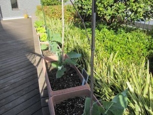 3Fデッキで植えつけてあるプランター野菜の様子です。