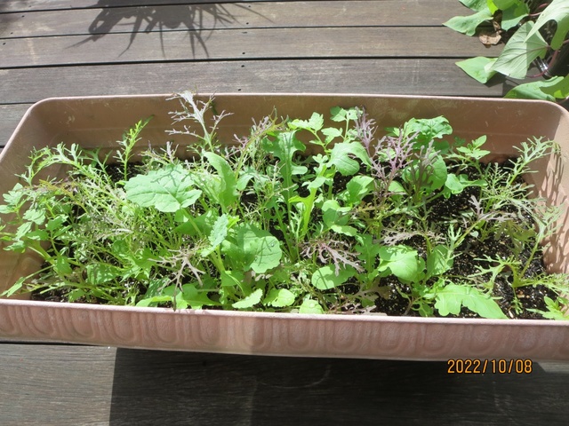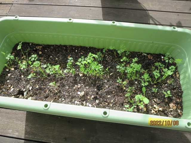 新たにレタスとにんじんの種を蒔いたら、芽が出て少しずつ大きくなってきました。
