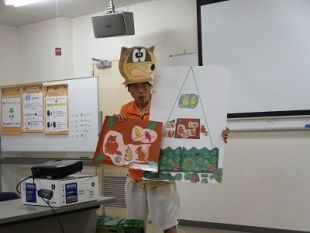 最後に自分たちの便利な暮らしが自然に少なからず影響を与えているんだ、ということのレクチャーをうけ、森や動物を守るために自分たちのできることを考えました。