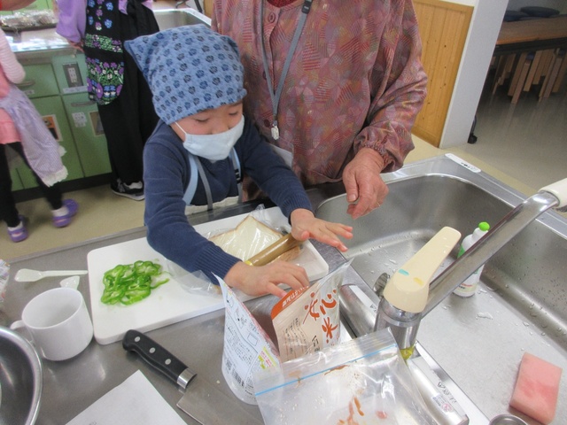 今回も、お菓子やフリーズドライ米を使用した、『災害時でも楽しくそして美味しいお料理』をご提案いただき、調理実習をしました。
