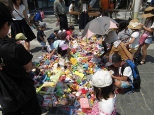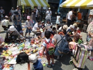 かえっこバザールでは、たくさんのおもちゃが並び、子どもたちは大興奮。