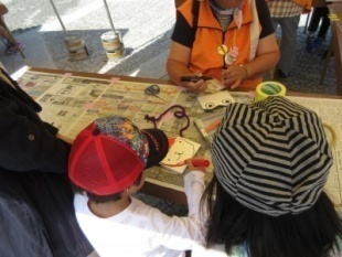 エコ屋台村では、牛乳パック工作、エコぬりえ、分別ゲーム、積み木広場をしました!