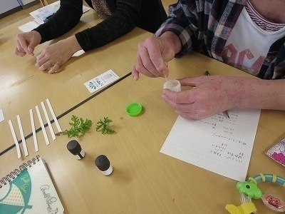 みなさん先生の説明を聞きながら、思い思いの精油を。