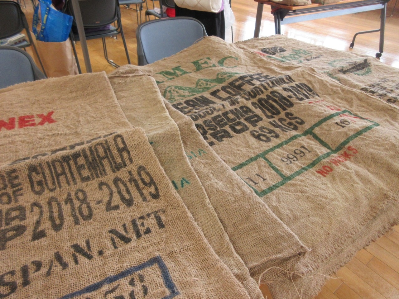コーヒー豆の麻袋は、地元の自家焙煎店から頂いたものを再利用させていただきました。
