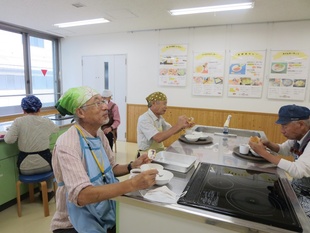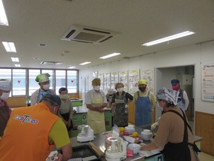 いつもは当日の流れや工程作業を確認しながらの試作ですが、今回は新型コロナウイルス感染拡大防止の為、消毒方法や参加者の方々が密にならないように、調理台での立ち位置などの工夫も話し合いをしました。