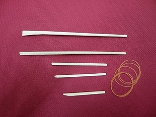 材料は、わりばしが5本と輪ゴムが6本のこれだけです。