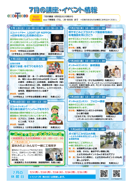 今日から、7月に開催する講座の申込み受付がスタートしました。