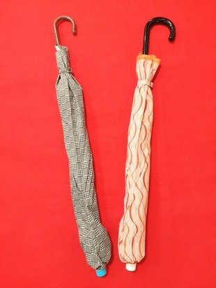 壊れてしまった傘の布を使って、買い物や社内で使える傘入れを作ります。