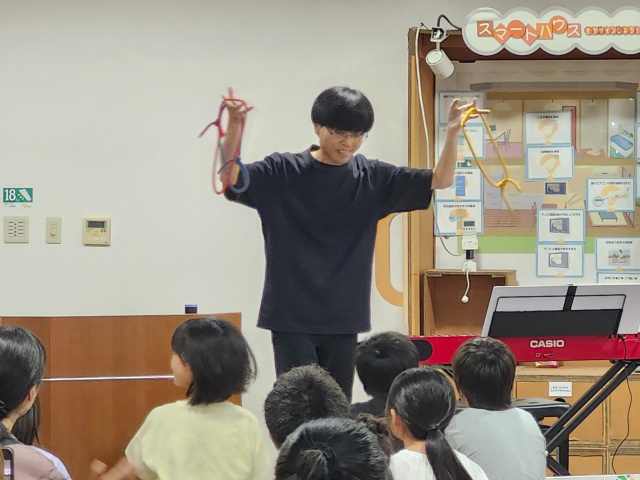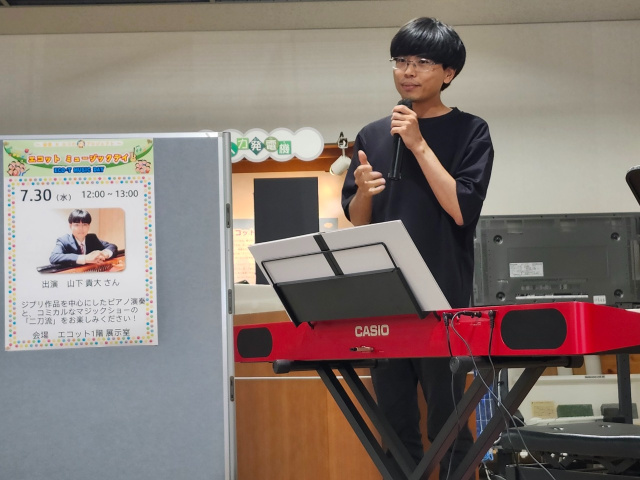 今回は竹村小学校教諭の山下貴大さんが、ジブリの音楽とマジックショーを披露してくれました。