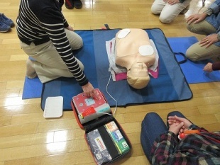 応急手当の練習用の人形やAEDもあり、本格的な研修となりました。