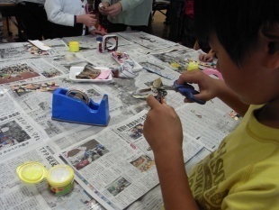 子どもたちは好きな絵を描いたりシールを貼ったりしてステキなグッズを作っていました。