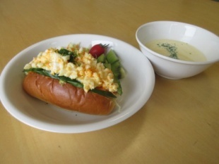たまごサンドと簡単スープが完成しました。