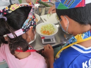1回の食事で食べるべき野菜の量を自分たちで測ります。