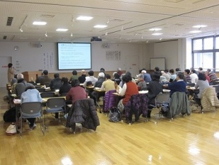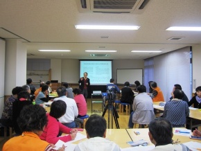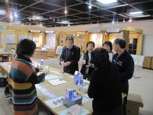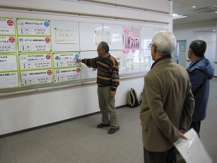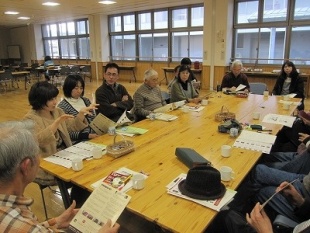 はじめに、事務局よりエコットの来館者数や講座の回数など、12月末の数字を見ていただきました。今年は、特に来館者24,000人を目指して、広報先を広げたり、施設利用の内容を変更するなど、工夫を凝らしたことが来館者アップにつながりました。