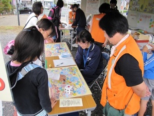 子どもたちには、人力発電機やエコライフすごろくが人気。