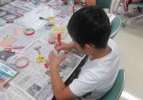 この日はエコットキッズタウン開催日。午前中は渡刈クリーンセンター見学と工作、