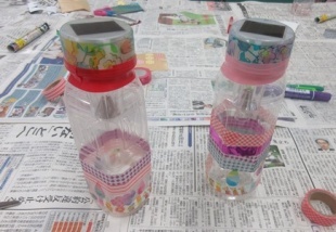 使用済みのペットボトルを使って、太陽光で充電できるランタンをいろいろな