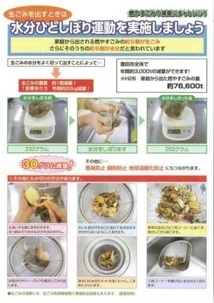 生ごみの水分を切って出すことによって、ごみの量が減り、収集運搬や燃やすときのエネルギーも減らすことができます。