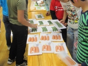食材が運ばれてくる距離とエネルギー・地球温暖化との関係や、地産地消(食)の大切さについて学びました。