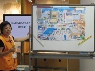 一緒に体操をしたり、紙しばいを読んだりして、インタープリターもとても楽しかった様子。楽しい思い出になったかな?
